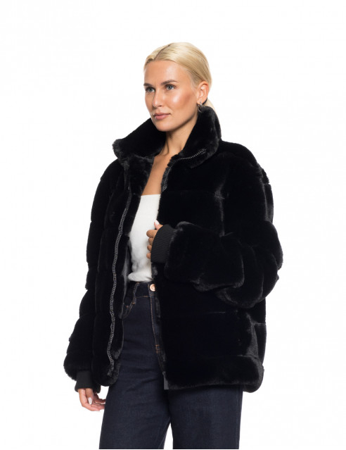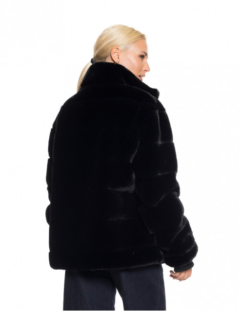 Eleganță absolută și confort suprem – această jachetă din blană ecologică neagră este alegerea ideală pentru un look sofisticat în sezonul rece. Cu o textură fină, catifelată și un luciu discret, piesa emană lux fără efort și completează perfect ținutele de zi sau de seară.