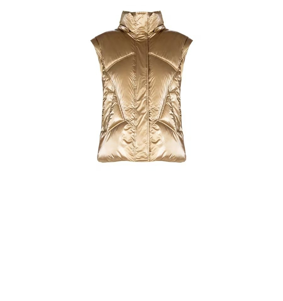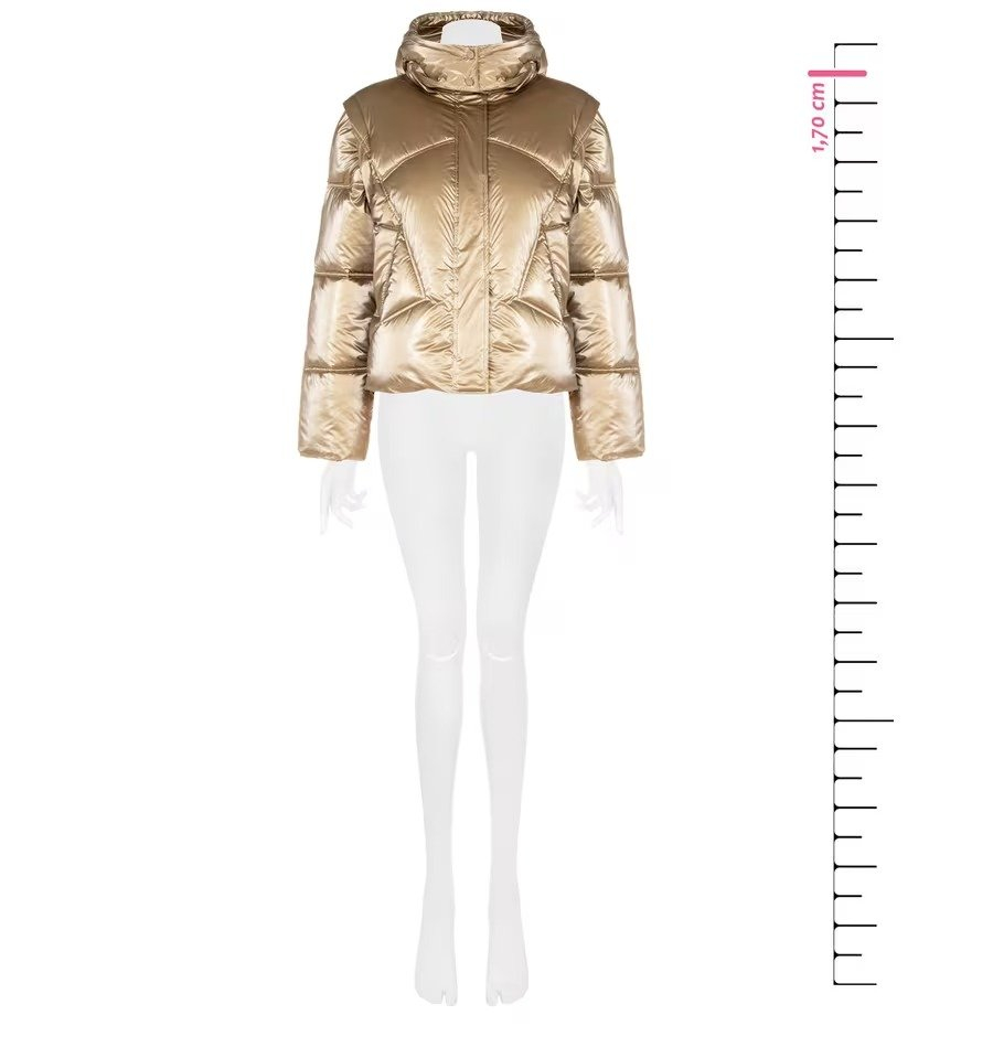 Geaca dama 2 in 1 cu finisaj metalizat auriu imbina stilul modern cu functionalitatea. Modelul permite purtarea in doua variante: ca geaca completa cu maneci sau ca vesta fara maneci, fiind alegerea ideala pentru tinute versatile in sezonul rece.
