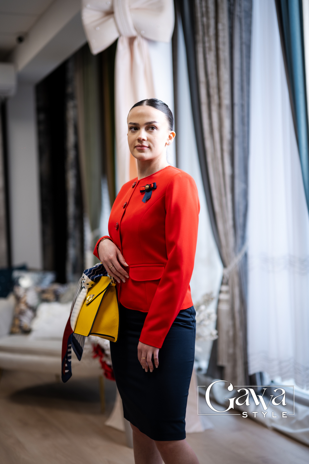 Sacoul dama GART, in nuanta rosu intens, este o piesa statement care exprima eleganta, incredere si feminitate. Croiala cambrata urmareste armonios linia corpului, oferind o silueta bine definita. Designul este completat de un detaliu decorativ tip brosa cu funda, discret dar sofisticat, care adauga un accent rafinat. Ideal pentru tinute office sau evenimente speciale, acest sacou transforma orice aparitie intr-una memorabila.